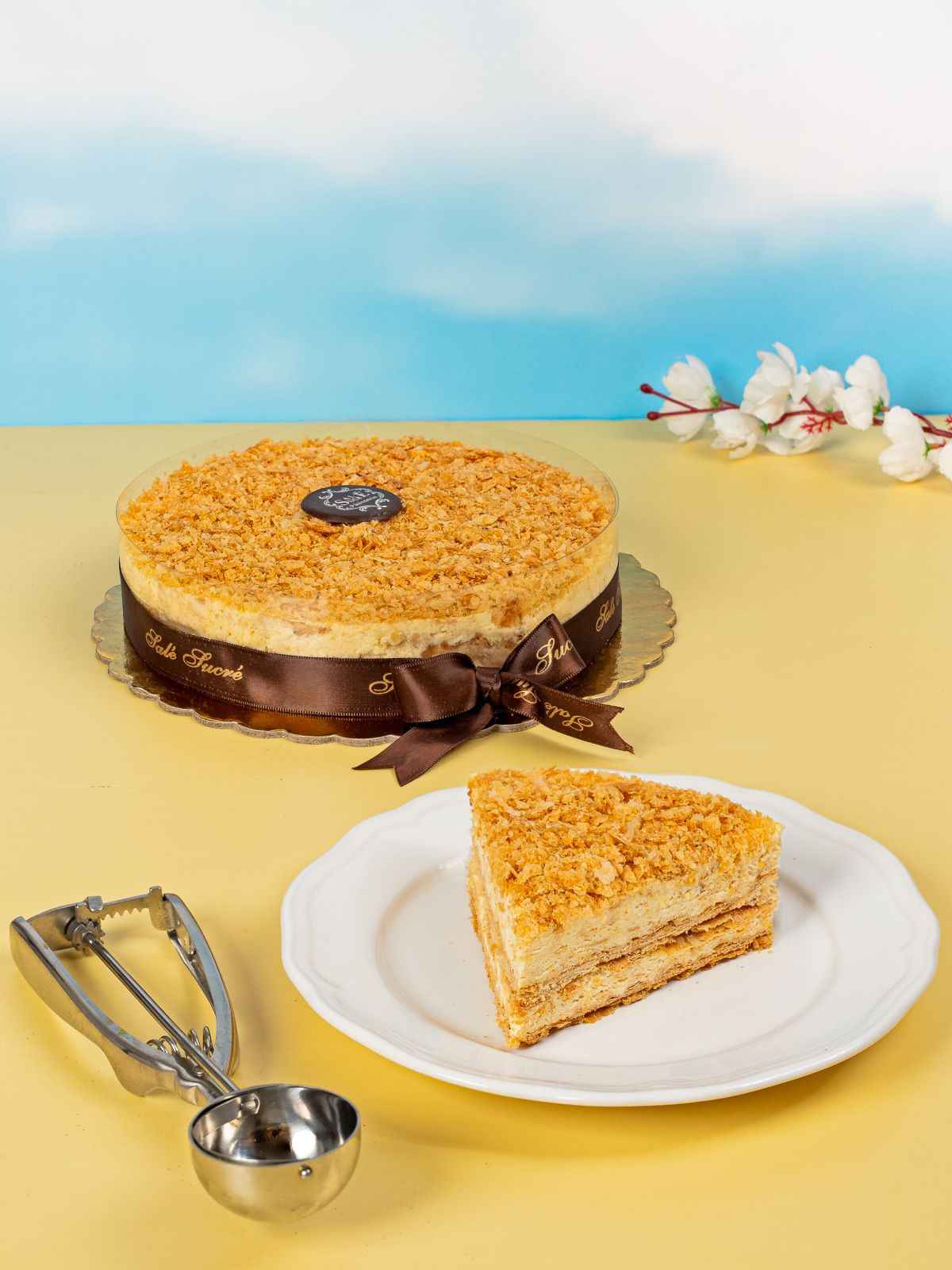 Creamy millefeuille-flavored ice cream layered with sheets of golden, crunchy pastry